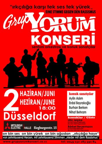 (indymedia): "Am 2.Juni ist es wieder so weit. Die berühmte revolutionäre Musikgruppe Grup Yorum aus Anatolien ist zu Besuch in der BRD. Seit fast drei Jahrzehnten steht die Band mit ihrer Volksmusik für politischen Widerstand und den Kampf für Sozialismus, ohne sich von Folter, Knast und Verbot durch den türkischen Staat einschüchtern zu lassen. Inzwischen sind Konzerte mit mehreren hunderttausend BesucherInnen keine Seltenheit mehr und Grup Yorum aus der Geschichte und Gegenwart der revolutionären Linken der Türkei nicht mehr wegzudenken."